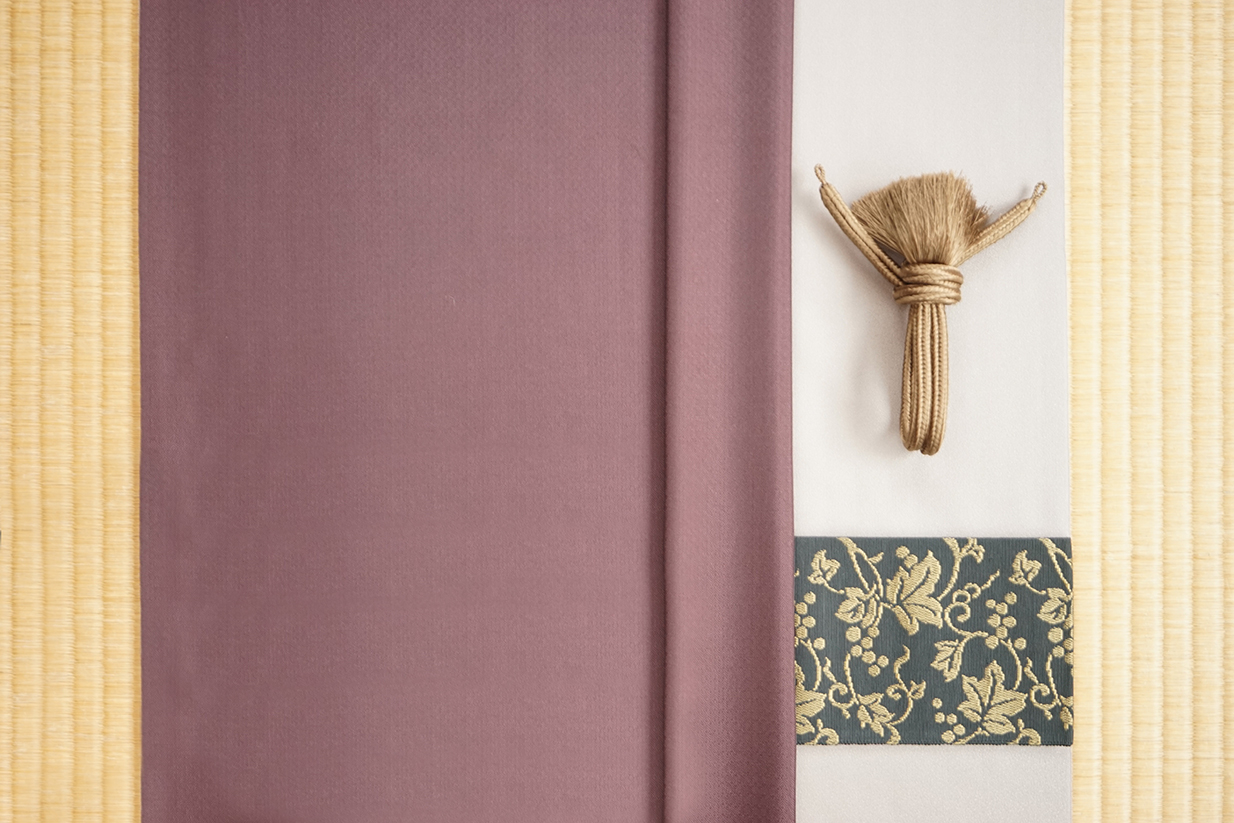 赤紫色のお召し羽織とよく調和し、あなたの魅力を引き立てます。