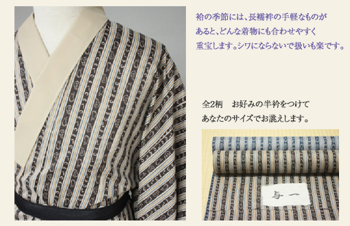 柄物以外に、無地もございます。既製品の襦袢と異なりオーダーサイズで安心です。