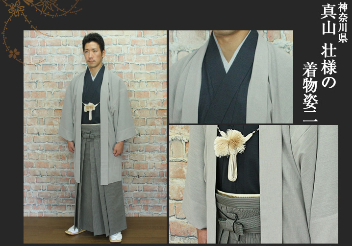 明るいグレーの色がお似合いになられたので、それに合わせて薄い墨色の袴を組み合わせました。