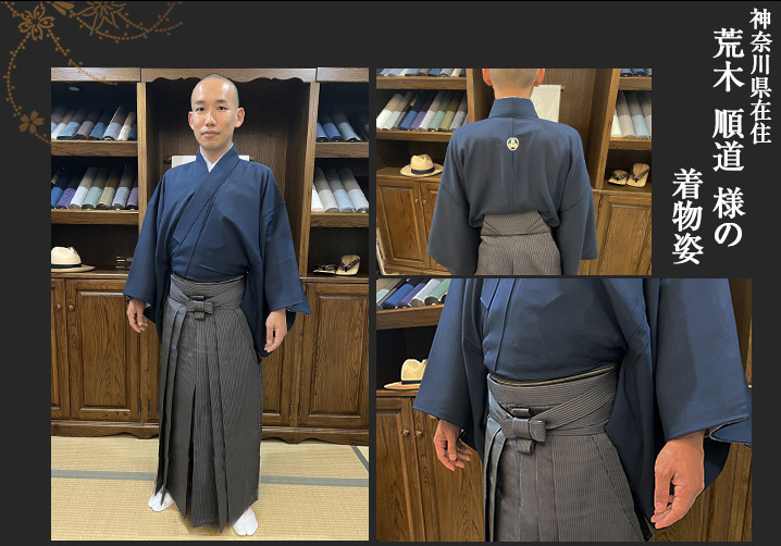 真山様から、茶道でも使えて夏のイベントの主催者としても使える羽織袴一式をご依頼されました。