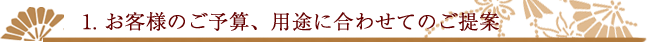 当店では、お客様のご予算は大切にしたいと考えております。それには、様々な知恵を取り入れてお客様のイメージを形にしたいと考えておりますので、少しお時間も頂くこともあります。